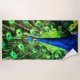 Strut your stuff at the beach while laying on this GORGEOUS vibrantly coloured beach towel featuring this close-up portrait of a peacock, strutting his stuff for the world to see. All of the vibrancy of colour and the UN-apologetic self-pride of the male peacock are the gifts of God's imagination and grace, but the execution of the expressionist style original painting capturing those gifts is only from the heart, mind, computer & hands of digital artist, Leslie Sigal Javorek.