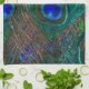 Vibrant Peacock Feathers Etching Style Decor Tea Towel