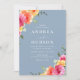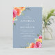 =Vibrant Pink Floral Dusty Blue Wedding Invitation