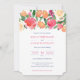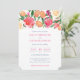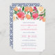 Vibrant Pink Florals Citrus Dark Blue Tile Wedding Invitation