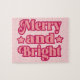 Vibrant Pink Merry and Bright Christmas Jigsaw Puzzle