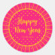 Vibrant Pink Starburst Script Happy New Year Classic Round Sticker