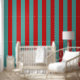 A bold vertical stripe pattern alternating between vivid postbox red and mermaid teal, creating a dynamic and eye-catching design perfect for fashion, home decor, or digital backgrounds.
