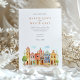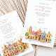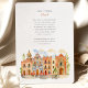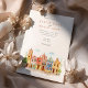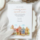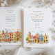 Invite your guests to a joyous and colourful celebration with this captivating watercolor wedding invitation, featuring the vibrant colonial architecture of Puebla, Mexico. The artwork beautifully showcases a streetscape of brightly coloured buildings, including facades in warm yellows, rich pinks, oranges, and distinctive blues, some adorned with traditional Talavera-style tile patterns (like the diamond/harlequin design). Characteristic church towers with terracotta domes rise above the scene, all rendered in a soft, vibrant watercolor style. The scene is framed by delicate green leafy sprigs and features small green bushes and a stylised tree, adding a touch of natural charm. This invitation is perfect for a destination wedding in Mexico, or for couples who adore lively culture, colourful architecture, and artistic flair. The front elegantly presents your wedding details, while the reverse side offers "The Finer Details" for guest information. The colour palette is a festive blend of sunny yellows, warm oranges, vibrant pinks, terracotta reds, various shades of blue, and fresh greens, set against a soft sky.