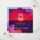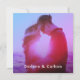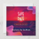 A modern, vibrant purple sunset Save The Date Card you can customise with your own favourite photograph. This eye-popping, bold design with a tropical touch and chic typography will make your upcoming nuptials announcement stand out! Add your photo to the back of the card and you're all set. Please note that we've added a filter and a semi-transparent overlay to the template photo to match the front of the card. You can easily remove the filter and hide the overlay by using the edit function.