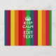 Vibrant Rainbow Keep Calm And Your Text Customise Postcard