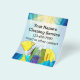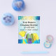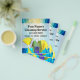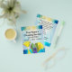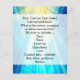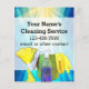 Personalise this colourful full-colour promotional business product with your cleaning or janitorial company name and details. Features aqua and bright blue rays of light background with a yellow gloved hand holding feather duster, a green bucket with rag, and blue spray solution.