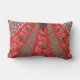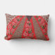 Vibrant red fabric featuring intricate floral and lumbar cushion