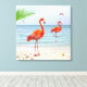 Vibrant Red Flamingos & Palm on the Beach Canvas Print