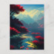 Vibrant Red Flora and Majestic Mountains Postcard