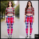 Vibrant Red Pink Aqua Modern Plaid Leggings