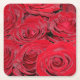 Vibrant, close up photograph of a bunch of red roses on party products and favours.