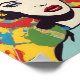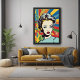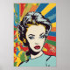 This artwork draws inspiration from the iconic pop art movement, chraacterised by its use of bright colours, commercial imagery, and a celebration of popular culture. The woman's confident expression and the vibrant explosion of colours around her make this piece a true statement of individuality and style. Whether you're a fan of retro designs or looking for something that pops in your interior, this print is sure to stand out.