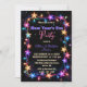 This dazzling New Year's Eve Party Invitation features a sophisticated, galactic black background that sets a luxurious tone for your celebration. The design is framed by a winding border of illuminated star-shaped string lights glowing in a vibrant, mesmerising spectrum of pink, purple, blue, and gold. Inside this luminous frame, the custom text uses a stylish mix of fonts: a playful handwritten script for "Party" in pink and a clear, modern purple for the event details. This customisable invitation is the perfect luminous beacon to announce your sparkling New Year's bash, ready for your date, time, address, and RSVP information.
