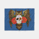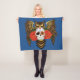 Vibrant Sugar Skull Red Roses Owl Fleece Blanket