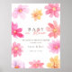 This bright and vibrant baby in bloom baby shower welcome sign poster features a stunning arrangement of wildflowers in bold, summery colours. This design features various petal hues of pink, orange and yellow to perfectly welcome your friends and loved ones in a budget-friendly way!
