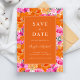 Announce your big day with this vibrant summer garden pink and orange wedding save the date, available as both a printed card invite and an instant digital download. Featuring bold watercolor floral designs in bright pink and orange, it’s perfect for couples seeking a fun, trendy, and intense vibe. With its colourful spring botanical theme, this unique save the date is a cheerful way to set the tone for your big day. Perfect for a pink and orange save the date celebration!