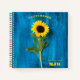 Vibrant Sunflower and Monogram on Blue Background Notebook