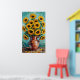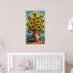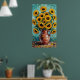 Bring the vibrant energy of a post-impressionist masterpiece into your home with this stunning Van Gogh style sunflower art poster. Featuring a rustic clay vase overflowing with bright yellow sunflowers, heavy impasto brushstrokes create a captivating 3D texture, capturing movement and light. The chaotic turquoise and teal background adds dynamic flair, making this an expressive and unique piece for any room or a perfect art lover's gift.