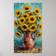 Vibrant Sunflowers Impasto Oil Painting Poster