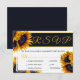 Gold calligraphy elegant script wedding RSVP card with menu options featuring rustic watercolor hand-painted sunflowers bouquet on a clean and bright white and dark midnight blue background. ++++++++++++ Ideal for your summer or autumn fall farmhouse style | modern rustic country | chic floral outdoor garden or backyard weddings. ------ If you don't need the menu options, just delete the text!