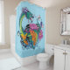 Vibrant Teal Oriental Koi Dragon Lotus Flower Shower Curtain