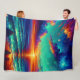 “Vibrant Teal Tides: Sunset Over Ocean” Fleece Blanket