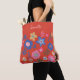 Vibrant Tropical Floral Red Personalised Script Tote Bag