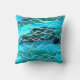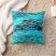 A stylish, eye-catching throw pillow or scatter cushion, in turquoise black and white, from an abstract, handpainted design, suggestive of 'Waves', by Judy Adamson.