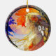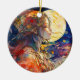 A vibrant ornament featuring a watercolor painting of a girl and moon.
