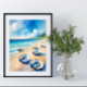 Bring the refreshing beauty of the ocean into your space with this vibrant beach poster featuring stunning seashells scattered along a crystal-clear shoreline. Lush shades of blue, golden sands, and a serene sky create an atmosphere of peace and natural wonder — perfect for coastal homes, beach cottages, or any room that could use a splash of seaside tranquillity. This colourful and lively coastal artwork makes a beautiful statement piece for ocean lovers and beach dreamers alike.