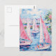 Vibrant Watercolor Pink Sailboats Tropical Coastal Postcard