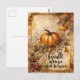 Vibrant Watercolor Pumpkin & Fall Leaves Harvest Postcard