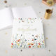 This design features a border of vibrant wildflowers in shades of red, yellow, green, teal, and blue. Perfect for casual summer baby showers.