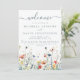 This design features a border of vibrant wildflowers in shades of red, yellow, green, teal, and blue. Perfect for casual summer weddings.