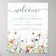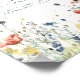 This design features a border of vibrant wildflowers in shades of red, yellow, green, teal, and blue. Perfect for casual summer weddings.
