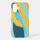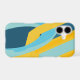 Vibrant yellows and blues bold geometric abstract with ring and stripes slim protective iPhone case for art lovers and gift buyers, Mid century modern inspired minimalist abstract design strong graphic lines and soft brush texture ideal as a statement phone accessory, Contemporary abstract illustration featuring contrasting blue rings and golden stripes versatile gift for her or him and daily protection.