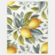 This elegant botanical design features detailed illustrations of vibrant yellow lemons, combined with branches and leaves in shades of bright blue and teal green. The art is rendered in a fresh watercolor style, with hints of minimalist line art, creating a modern and sophisticated look.