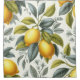 This elegant botanical design features detailed illustrations of vibrant yellow lemons, combined with branches and leaves in shades of bright blue and teal green. The art is rendered in a fresh watercolor style, with hints of minimalist line art, creating a modern and sophisticated look.