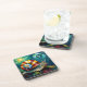 A beautiful vibrant and colorful snail in blue, brown, green and swirls of colors in an impasto style coaster.