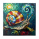 Vibrantly Colorful Impasto Whimsical Snail Tile