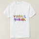 The t-shirt features the text "Vibrate Higher" in a vibrant spectrum of colours. Each letter flows into the next like a wave, creating a dynamic and energetic look.