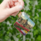 The key chain is made of metal and really sturdy. The flower design is really cheerful. The logo and colors are clear and crisp!