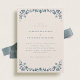 This wedding invitation showcases an elegant and formal design, perfect for a sophisticated ceremony with blue tile inspired watercolor botanical designs.