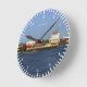 The clock did not take as long to arrive as I thought it might and was extremely well packaged. I didn't do the measurements so I didn't realize it is a little smaller than the average clock but that does not matter (just make sure you check if that's important to you).It is really nifty! It seems very solid and well made not flimsy at all. It has been going well and has kept good time in its few weeks on my wall. Nice product. Gets noticed too! Nicer in real life than the picture but true to the picture