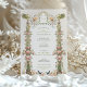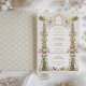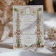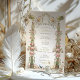 This invitation transports guests to a Victorian garden party, complete with angelic figures and an abundance of flora. The soft pastel pink of blooming roses pairs with the sage green of foliage, all anchored by a rich, jewelled pedestal that speaks to Victorian opulence. Angels poised with floral garlands evoke a sense of celebration and grace, inviting guests to a wedding that promises to be as enchanting as the design itself. The colour palette is a dreamy mix of blush, sage, and antique gold, perfect for the couple who desires a wedding day filled with the beauty and romance of a bygone era.