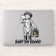 Funny Baby on Board sticker featuring a funny Victorian baby image. The cute Victorian baby is carrying his miner's canary in a cage, drinking his milk from a bottle and is wearing a flat cap with a miner's lamp on it. He also has braces on his nappy or diaper, if that's what you prefer. This funny Baby on Board sticker is for all parents who have a sense of humour and a baby who is already wearing flat caps.