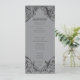 Elevate your gothic wedding with a Victorian-inspired wedding menu that exudes timeless elegance and mystery. Designed to resemble an antique book binding, this stunning design features intricate a black and grey lacey filigree, evoking the charm of a bygone era. Let your love story unfold with a program as unforgettable as your day. Created by Simply Farmhouse Press.