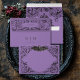 Elevate your gothic wedding with a Victorian-inspired wedding invitation envelope that exudes timeless elegance and mystery. Designed to resemble an antique book binding, this stunning design features intricate a black and purple lacey filigree, evoking the charm of a bygone era. A bat with wings spread sits at the pinnacle, adding a touch of dark romance, perfect for setting the tone for your unique celebration. Let your love story unfold with a design as unforgettable as your day. Created by Simply Farmhouse Press.