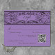 Elevate your gothic wedding with a Victorian-inspired response card with a QR code that exudes timeless elegance and mystery. Designed to resemble an antique book binding, this stunning design features intricate a black and purple lacey filigree, evoking the charm of a bygone era and adding a touch of dark romance, perfect for setting the tone for your unique celebration. Let your love story unfold with a design as unforgettable as your day. Created by Simply Farmhouse Press.